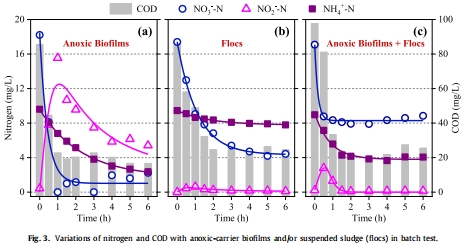 批次測試:對比生物膜載體、懸浮污泥及其混合體系的氮轉(zhuǎn)化路徑(圖3)。