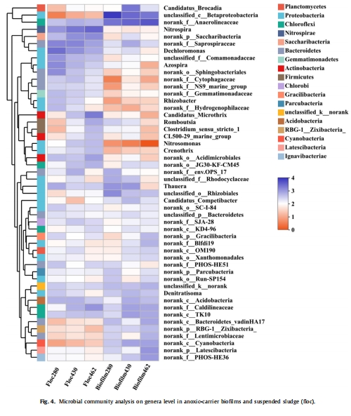 數(shù)據(jù):懸浮污泥流失后,生物膜中anammox豐度從0.74%升至4.34%(P<0.001)。