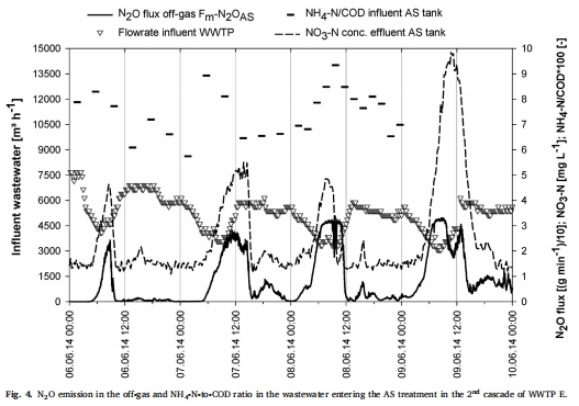 NH??/COD比升高時(shí)(如早高峰),反硝化抑制導(dǎo)致N?O排放激增(圖4)。