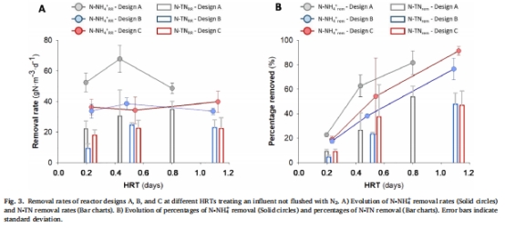測(cè)試參數(shù):水力停留時(shí)間(HRT: 0.3–1.1 d)、進(jìn)水溶氧(N?沖洗 vs. 未沖洗)。