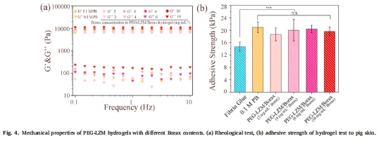 數據:不同硼砂濃度(2–20 mg/mL)下水凝膠的儲能模量(G')均穩定在~1200 Pa(圖4a)。