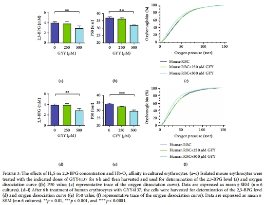 H?S直接作用于紅細胞:體外實驗證實H?S供體GYY4137可降低2,3-BPG并增強Hb-O?親和力(圖3)。