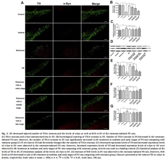 意義:HS通過減少α-Syn積累和氧化損傷保護關鍵神經元,延緩PD進展。