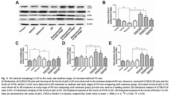 SN區p62↓47%(早期)(圖5C),ATG5↑80%(早期)(圖5D)。