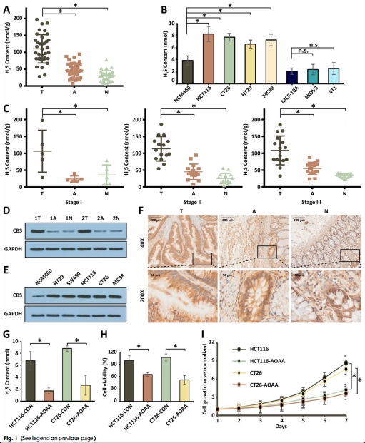 證實(shí)CBS抑制劑(AOAA)降低H?S后抑制CRC生長(圖1G-I),反向驗(yàn)證H?S的促癌作用;