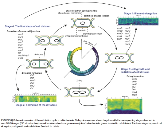 細胞周期與單細胞細菌相似:電纜細菌的細胞分裂過程與革蘭氏陰性模型菌(如大腸桿菌)高度保守(圖6)。