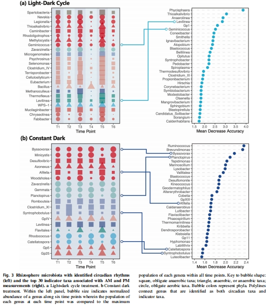 解析調控機制:區分光照環境變化(外源驅動)與微生物內源生物鐘對根際微生物節律的影響。