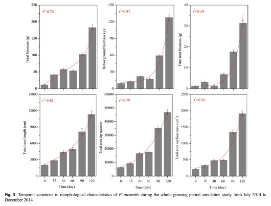 ? 蘆葦形態(tài)參數(shù):生物量、根長(zhǎng)、根表面積等(圖3)。