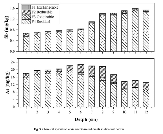 ? 數據:As和Sb的殘渣態(tài)(F4)占比最高(77.1%/90.4%),可交換態(tài)(F1)僅占0.78%/3.68%。