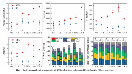 ? 意義:SPM的TP(782.62 vs 549.52 mg/kg)和LOI(8.81% vs 6.69%)顯著高于表層沉積物,證明其作為外源污染載體輸入活性磷(Fe-P↑53%)。