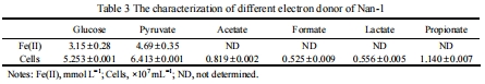 電子供體偏好:丙酮酸>葡萄糖(Fe(II)積累4.69 vs. 3.15 mmol/L),不利用乙酸/乳酸等(表3)。