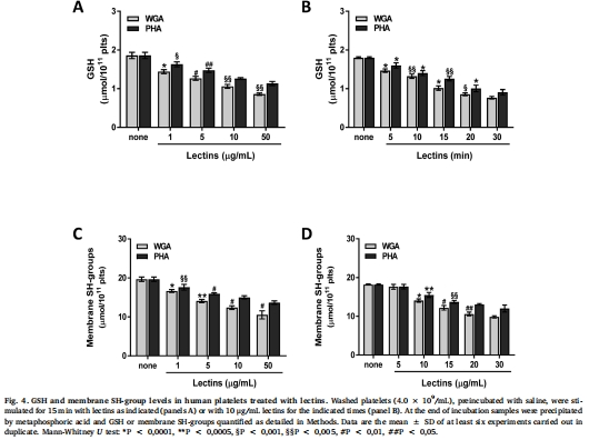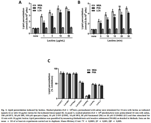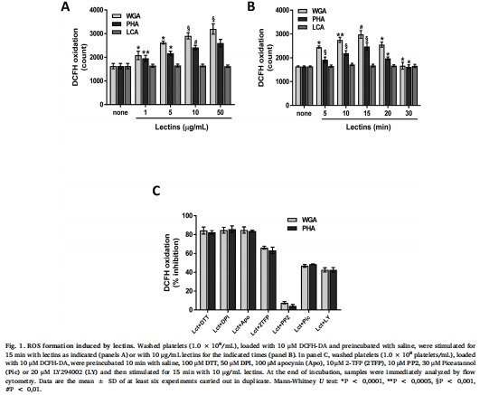 本研究首次揭示 小麥胚芽凝集素(WGA) 和 菜豆凝集素(PHA) 通過雙重機制誘導血小板氧化應激: