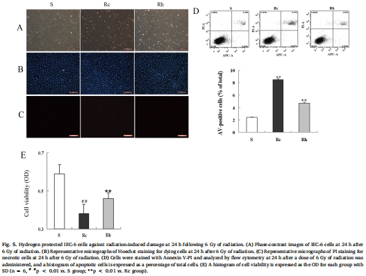 3.評估氫氣在 動物模型(致死/亞致死劑量輻射)和 細胞模型(IEC-6腸上皮細胞)中的保護效果。
