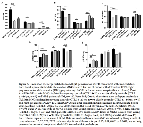 ATP/AMP比:DFX使MDS組從0.12±0.01升至0.33±0.02(p<0.0001)。