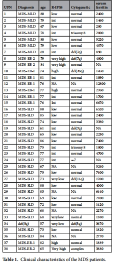 MDS組:38例伴鐵過(guò)載患者(表1)。