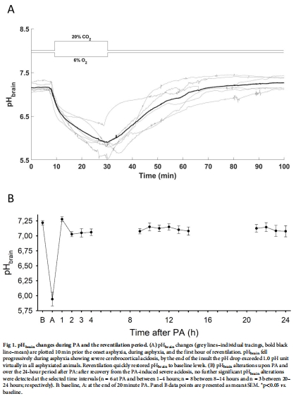 PA期間pHbrain從7.21 ± 0.03驟降至5.94 ± 0.11(嚴(yán)重酸中毒);