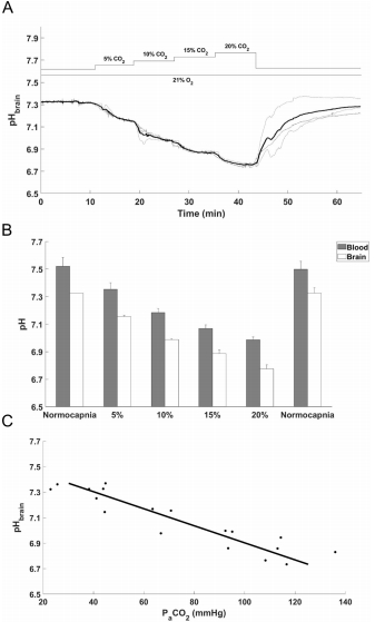 量化呼吸性酸中毒對pHbrain的貢獻(xiàn)(PA期間約60% pH下降歸因于高碳酸血癥);