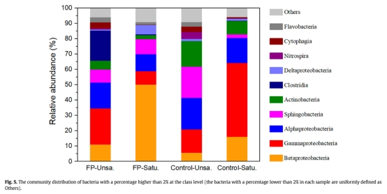3 菌群結構(圖5):闡明材料添加驅動菌群演替(FP-SCW飽和區β-變形菌占比50.15%)