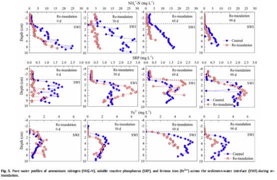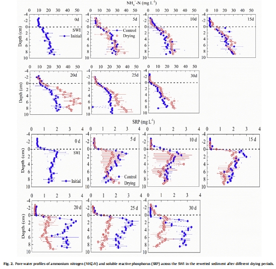 氮:干燥引起的沉積物氧化導(dǎo)致不穩(wěn)定的NH?-N通過硝化等作用不可逆地?fù)p失。