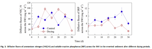 揭示沿岸帶沉積物在不同干燥時長及后續(xù)再淹沒過程中,NH?-N和SRP通過沉積物-水界面的交換通量變化規(guī)律。