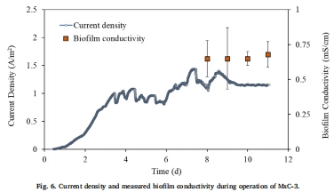 數(shù)據(jù)來源:圖6 展示了MxC-3中測得的生物膜電導率,穩(wěn)定在 0.67 ± 0.14 mS/cm。