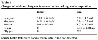 數(shù)據(jù)來源:表1 列出了在無陽極呼吸的血清瓶中,72小時后各脂肪酸和沼氣的濃度變化。