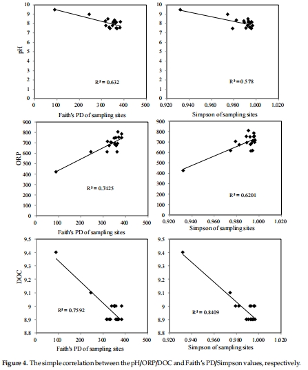 pH、DOC和ORP是驅(qū)動微生物群落結(jié)構(gòu)和多樣性的最關(guān)鍵環(huán)境因子。pH和DOC升高、ORP降低對微生物多樣性產(chǎn)生負面影響。