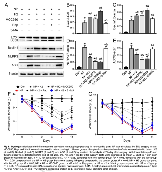 研究目的是探討富氫鹽水緩解神經(jīng)病理性疼痛的機制,重點關(guān)注自噬和炎癥小體在其中的作用,以及氫氣如何通過調(diào)節(jié)自噬來影響炎癥小體活性。