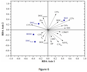 由于DOM分子特性與水生物理化學條件之間的相互作用,(iii)DOM的微生物利用路徑將存在顯著差異。