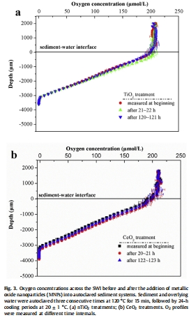 在最表層沉積物(0-1500 μm),生物氧消耗顯著被MNPs抑制,CeO2 NPs的急性毒性比TiO2 NPs更強。