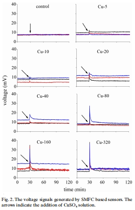 傳感器性能優越:SMFC傳感器可實現Cu2?的快速(30秒)、線性(≤160 mg/L)檢測,且無需馴化、抗毒性強。