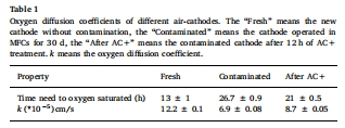 研究意義:k值從污染陰極的6.9×10?? cm/s增至AC+處理后的8.7×10?? cm/s(提升34%),證明孔隙清潔改善氧傳質,是性能恢復的關鍵指標。