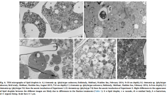缺氧引發顯著的應激反應:Ammoniaspp. 在缺氧條件下表現出清晰的超微結構應激標志,最主要的是脂滴的積累和增大。