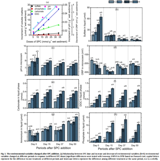 數據關聯:測量顯示SPC添加后ORP顯著降低(Fig. 1a),表明沉積物從氧化轉向還原狀態。