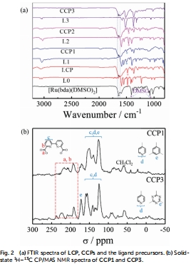 數據:Fig. 1顯示配體和Ru前驅體結構;Fig. 2a FTIR譜證實羧酸酯和芳香環特征峰,Fig. 2b NMR顯示芳香碳和triazine環信號;Fig. 3a ICP-MS測得Ru含量接近理論值,Fig. 3b TGA表明熱穩定性達150°C。