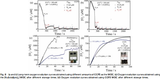 活性比較:監測不同CCPs的氧氣產生曲線(如CCP3優于CCP2),結合接觸角數據(Fig. 7),揭示親水性對活性的影響。