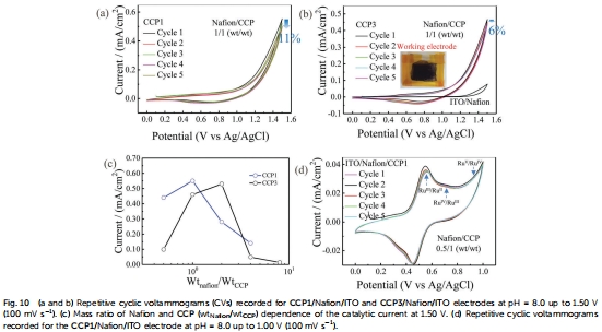 電化學評估:制備CCP/Nafion/ITO電極,測試循環伏安和穩定性。