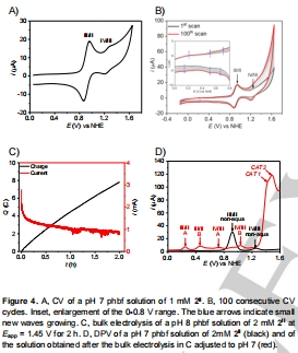 電化學(xué)分析:通過CV、DPV(Fig. 3, 4)和庫侖法測量氧化還原電位、pH依賴性(Pourbaix圖,F(xiàn)ig. 5)和催化電流。