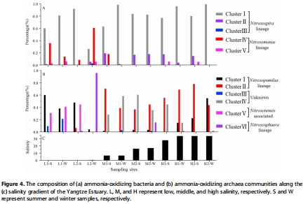 長江口鹽度梯度氨氧化原核生物群落動態及活性變化