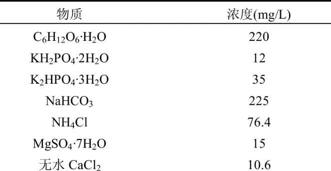 實驗采用人工配水,配方見表1.為了更好的模擬真實廢水中的情況,配水中還加入了生物膜生長所需的微量元素。