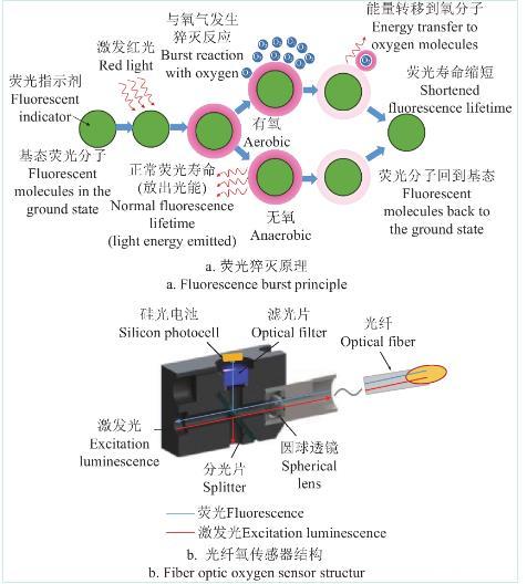 圖2熒光猝滅原理和光纖氧傳感器結構