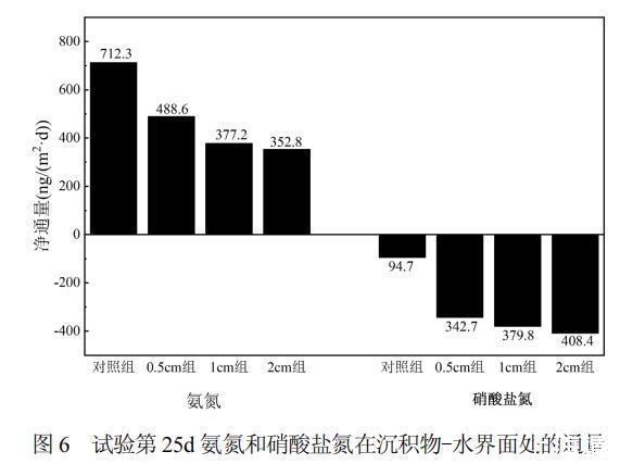 圖6試驗(yàn)第25d氨氮和硝酸鹽氮在沉積物~水界面處的通量