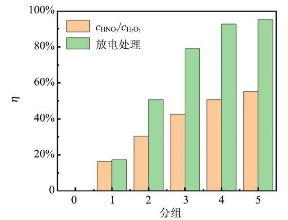 圖8放電殺菌效率和H2O2混合HNO3含量配比溶液殺菌效率對比