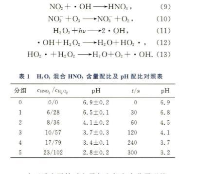 表1 H2O2混合HNO3含量配比及pH配比對照表