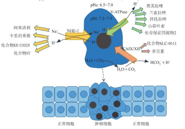 圖1維持腫瘤細(xì)胞異常pH梯度的膜轉(zhuǎn)運(yùn)體
