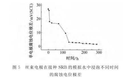 圖5絲束電極在接種SRB的模擬水中浸泡不同時間的腐蝕電位極差