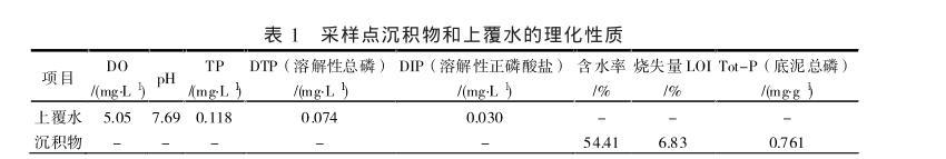 2015年4月利用大口徑重力采樣器(Rigo Co.直徑90 mm,高500 mm)在無錫梅梁灣采樣點(N31°31'30.10″,E120°10'57.1)采集表層15 cm沉積物柱樣總計16根,并保留采樣管上覆水水樣,用橡皮塞密封采樣管兩端,再垂直地把采集到的柱樣放入采樣架中,同時采集上覆水50 L,采樣運輸過程中盡量保持柱樣不發生擾動。采樣點底泥及上覆水的各項理化性質見表1。