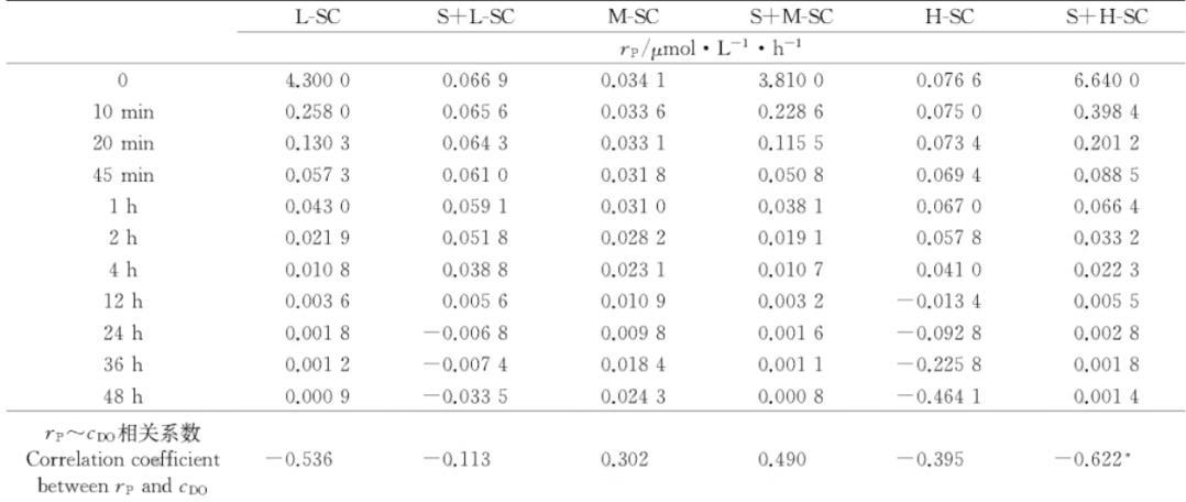 表2體系不同時刻的耗磷速率及其與溶解氧含量的相關性分析結果