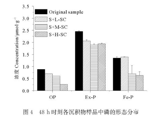 圖4 48 h時刻各沉積物樣品中磷的形態分布