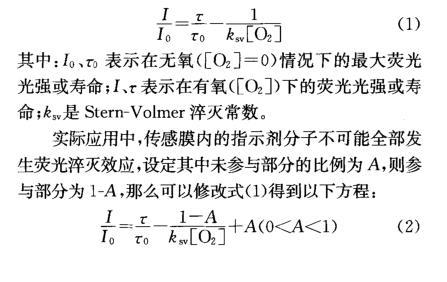 通過校準確定ksv、A、I和I0系數,利用公式(3)就可計算出氧的濃度。